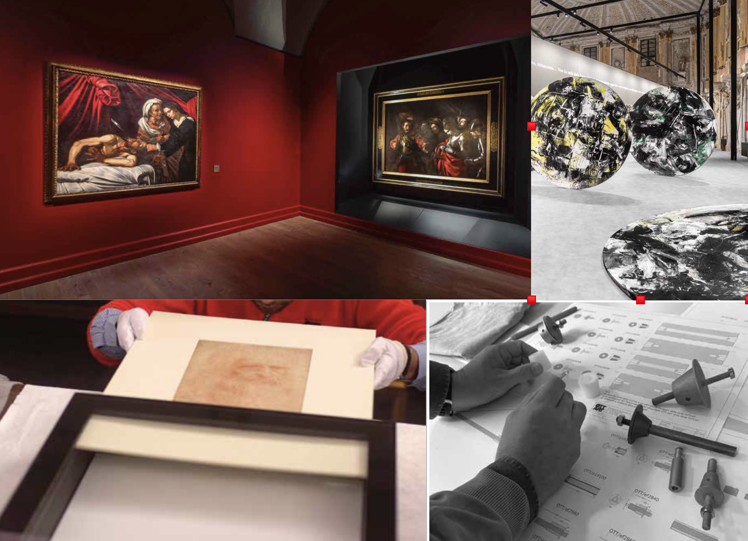 Il contesto è quello delle grandi mostre cresciute dagli anni Novanta in poi, con l’aumento di scambi e movimentazioni di opere e con la necessità di sviluppare ricerche e competenze specialistiche. E infatti l’incontro richiama esempi emblematici: dalla lunga teca per il “Fregio palagiano” al Castello di Racconigi, al climaframe pensato per proteggere senza interferire con la visione il “Martirio di sant’Orsola” di Caravaggio, fino a soluzioni tecniche millimetriche per allestimenti contemporanei come la mostra su Emilio Vedova a Palazzo Reale e agli interventi per la Veneranda Fabbrica del Duomo di Milano.